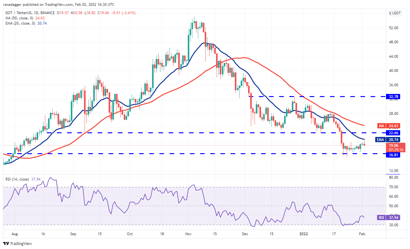 The failure of the bears to pull Polkadot (DOT) below the strong support at $16.81 in the past few days could have attracted buying from the aggressive bulls. This started a relief rally which reached the 20-day EMA ($20.74).