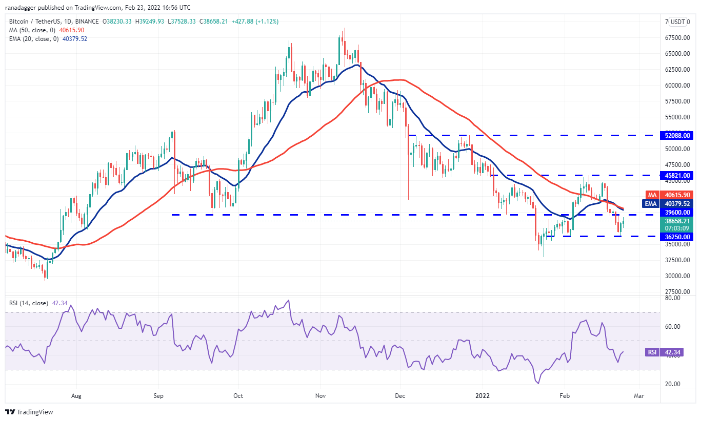 Bitcoin bounced from the first support at $36,250 and the bulls will now attempt to push the price above the overhead resistance zone between $39,600 and the 50-day simple moving average ($40,615).