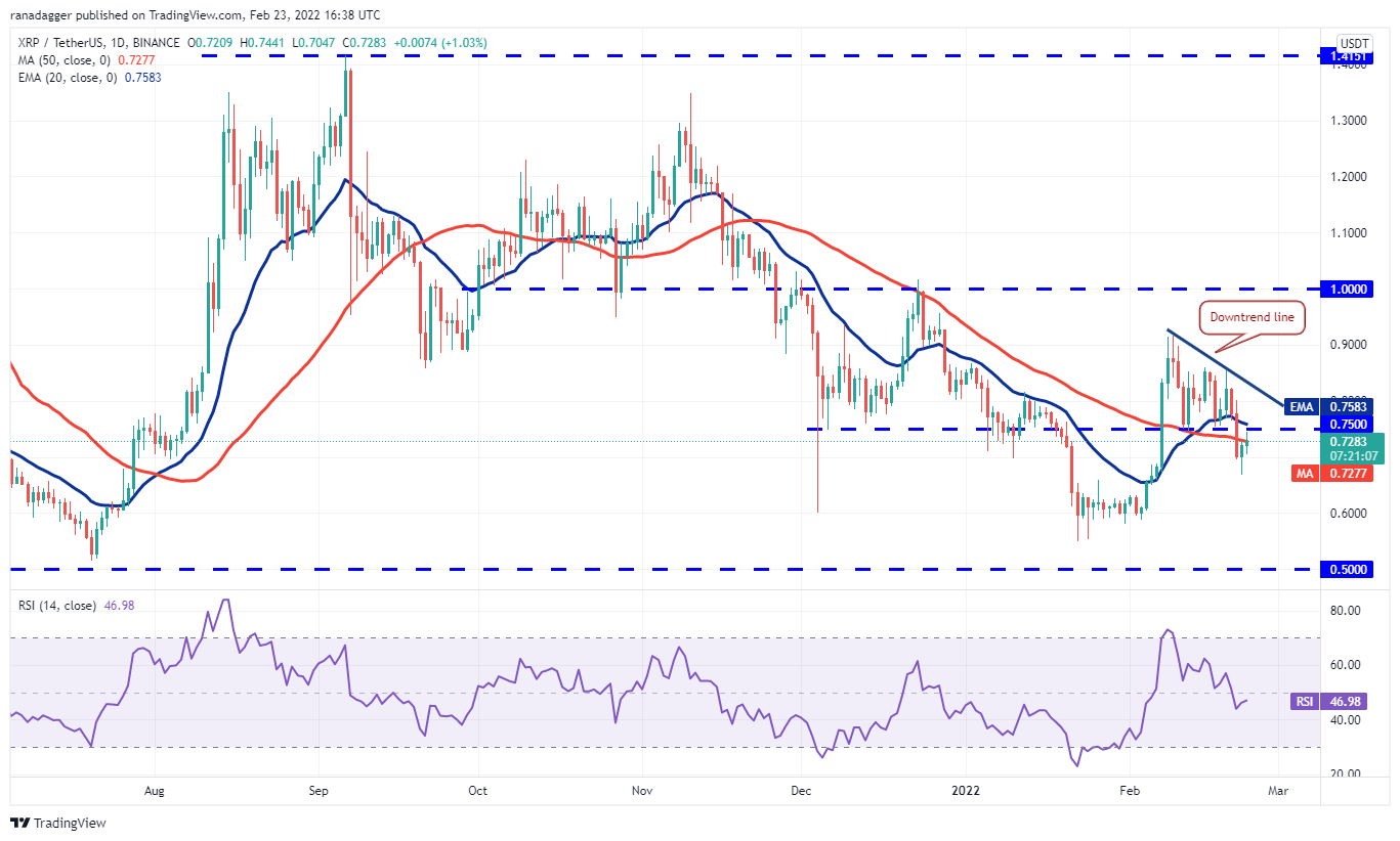 Ripple (XRP) bounced off $0.66 on Feb. 2 and the bulls pushed the price above the 50-day SMA ($0.72). The buyers will now attempt to clear the overhead hurdle at $0.75.