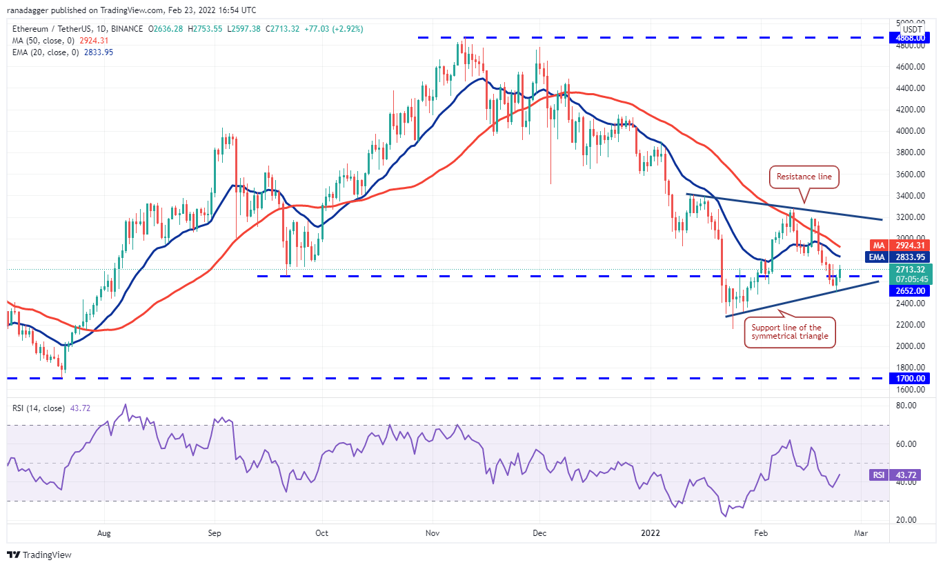 Ether (ETH) bounced off the psychological support at $2,500 on Feb. 22. The bulls have pushed the price above the breakdown level of $2,652, indicating strong buying at lower levels.