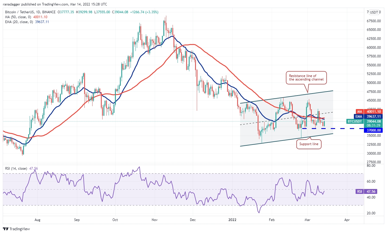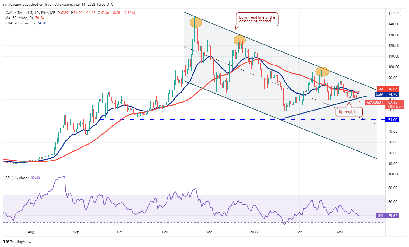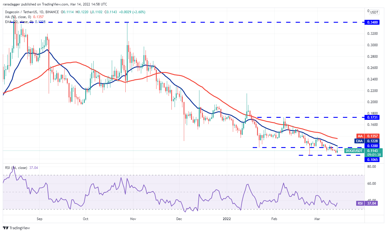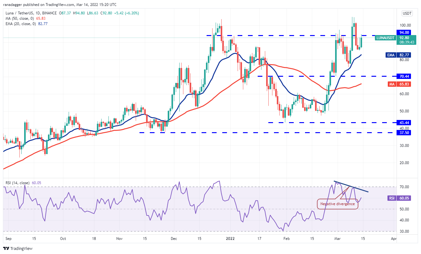 Terra’s LUNA token slipped below $94 on March 11 but the bears could not pull the price to the 20-day EMA ($82). This is a positive sign as it shows that traders are buying on every minor dip.