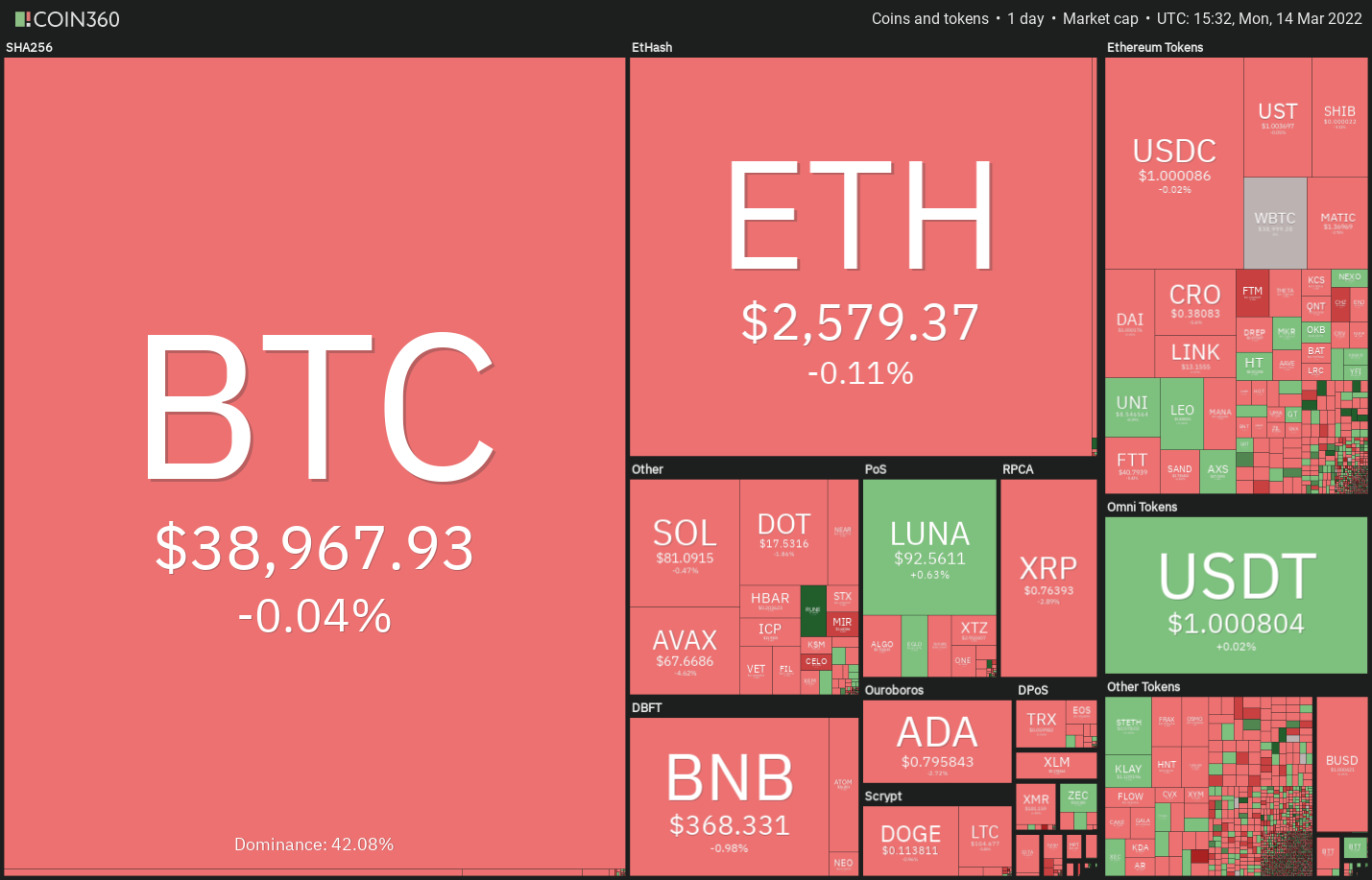 Tento príspevok bol pôvodne publikovaný na stránke https://cointelegraph.com/news/price-analysis-3-14-btc-eth-bnb-xrp-luna-sol-ada-avax-dot-doge a autorom článku je Cointelegraph By Rakesh Upadhyay. Tento článok je iba kópia originálneho článku.
