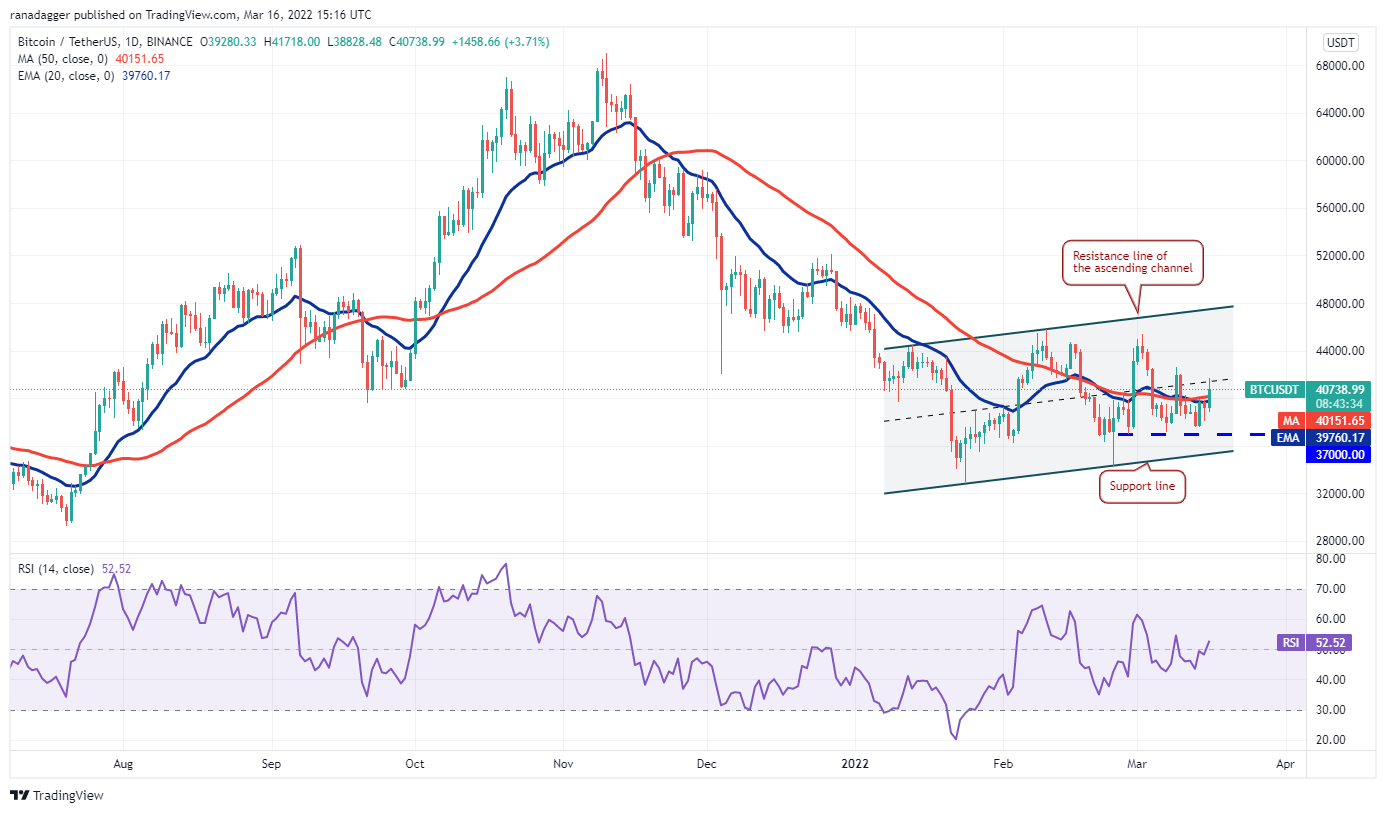 https://images.cointelegraph.com/images/840_aHR0cHM6Ly9zMy5jb2ludGVsZWdyYXBoLmNvbS91cGxvYWRzLzIwMjItMDMvNTJjNTE3NmItY2JkYS00YzhjLTkxZDctMGYwNjc5Yjg1N2VhLmpwZw==.jpgBitcoin (BTC) is witnessing a see-saw battle near $40,000 with both the bulls and the bears trying to gain the upper hand. The volatility could remain high as the markets await the United States Federal Reserve’s policy decision due on March 16.
