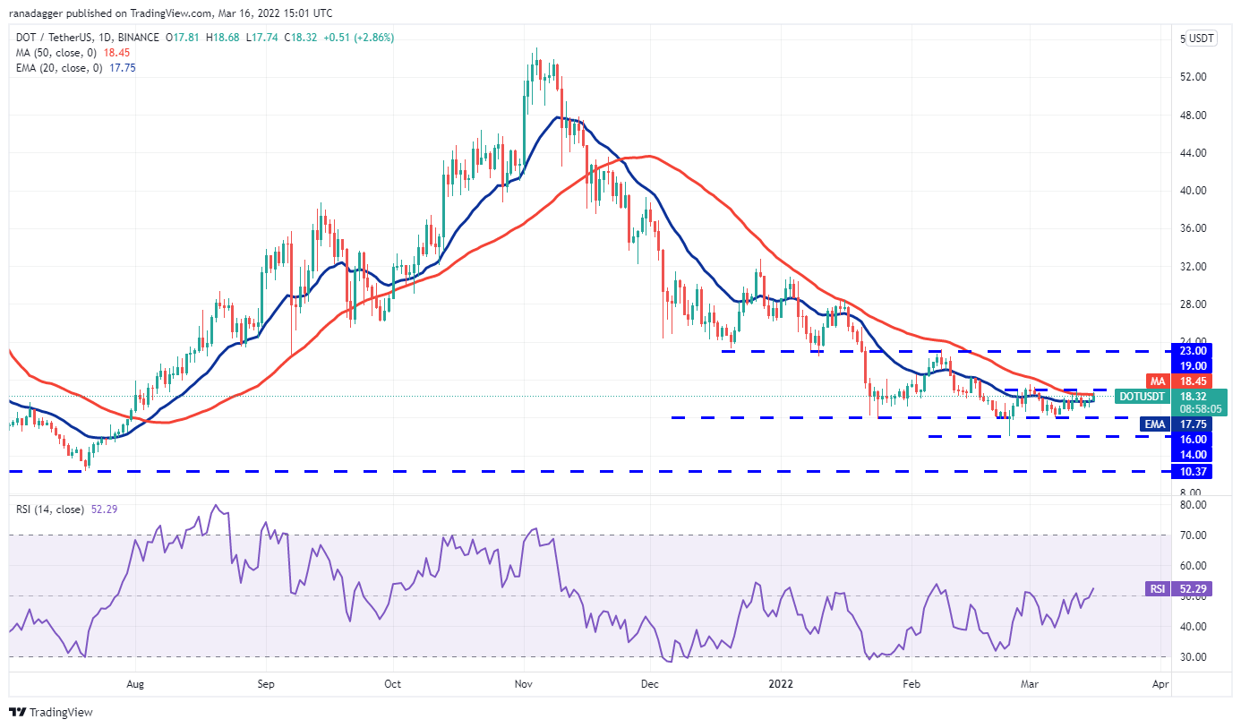 Polkadot (DOT) has been trading close to the 20-day EMA ($17) for the past two days, indicating that the bulls are buying the dips.