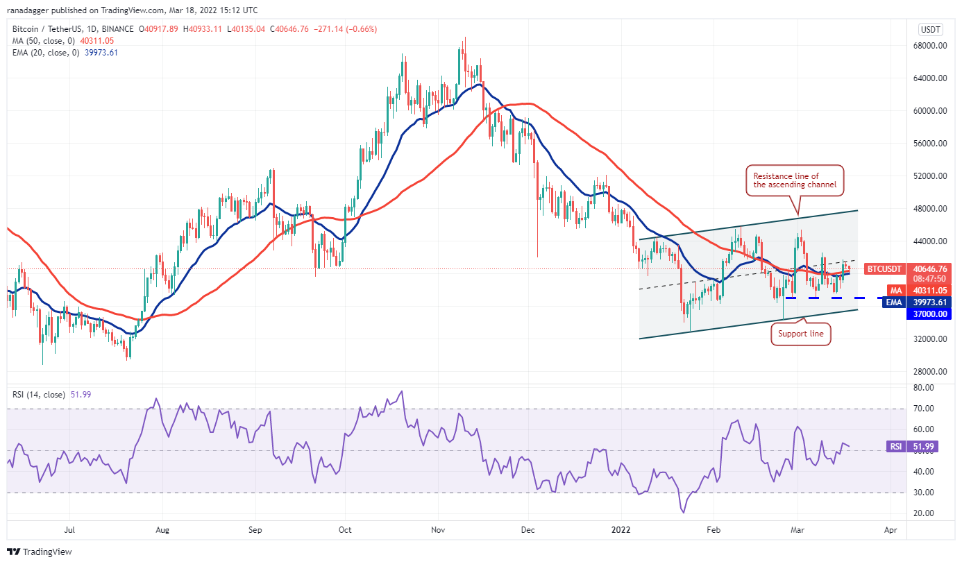 Bitcoin broke and closed above the 50-day simple moving average (SMA) ($40,311) on March 16 but the bulls are struggling to build upon this breakout. This suggests that demand dries up at higher levels.