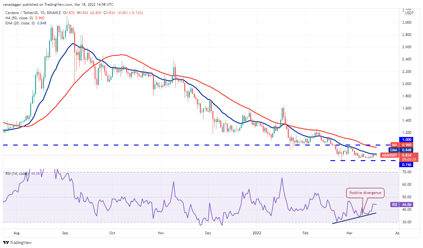 Cardano (ADA) is facing stiff resistance at the 20-day EMA ($0.84) which suggests that the bears are defending this level aggressively.
