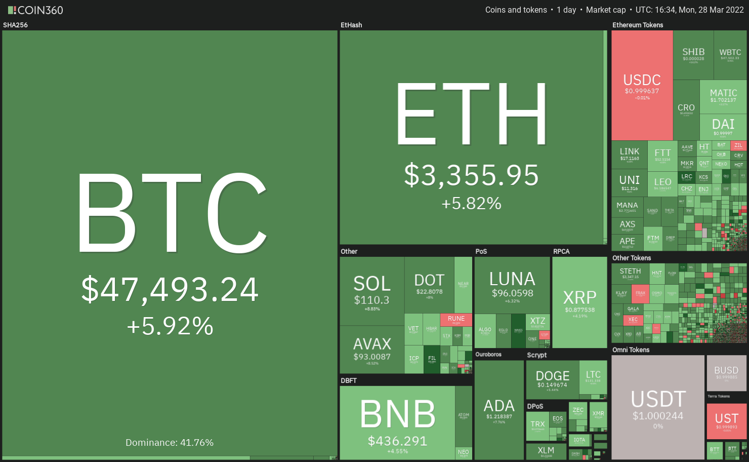 Tento príspevok bol pôvodne publikovaný na stránke https://cointelegraph.com/news/price-analysis-3-28-btc-eth-bnb-xrp-ada-luna-sol-avax-dot-doge a autorom článku je Cointelegraph By Rakesh Upadhyay. Tento článok je iba kópia originálneho článku.