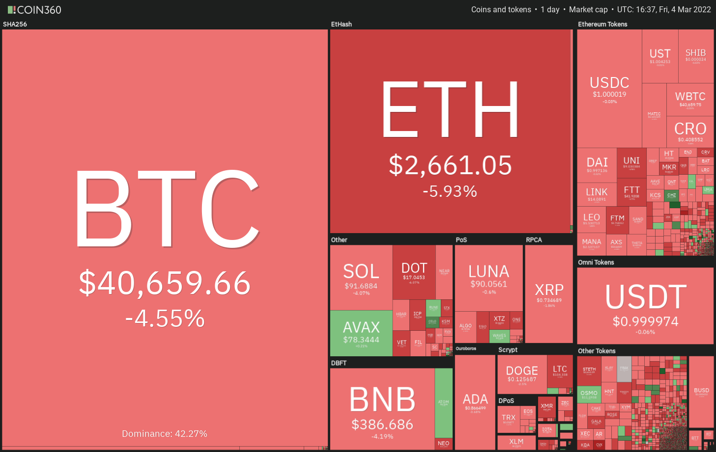 https://images.cointelegraph.com/images/840_aHR0cHM6Ly9zMy5jb2ludGVsZWdyYXBoLmNvbS91cGxvYWRzLzIwMjItMDMvMTIwNzQ4ZDUtMDk3ZC00ODkzLTg3MWUtZDk0Yjk4ZDc2OWRkLkpQRw==.jpgThe equity markets in Europe and the United States are seeing a sea of red as traders continue to sell risky assets due to the geopolitical situation. Bitcoin (BTC) and several major cryptocurrencies are also witnessing profit-booking after the recent rise.