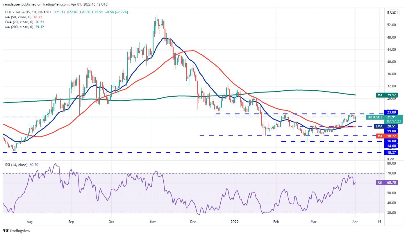 The failure to break above the $23 resistance may have attracted profit-booking by the short-term traders in Polkadot (DOT). That pulled the price down to the 20-day EMA ($20) on April 1.