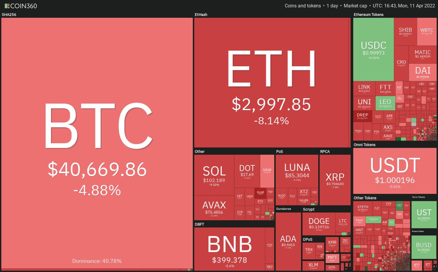 https://images.cointelegraph.com/images/840_aHR0cHM6Ly9zMy5jb2ludGVsZWdyYXBoLmNvbS91cGxvYWRzLzIwMjItMDQvZWQzNzE1NDgtYmE5My00NGIyLTg2NGYtOGU3MzY2ZDU2OTFiLmpwZw==.jpgBitcoin (BTC) and most major altcoins have broken key support levels to start the week on a weak note. The crypto markets seem to be following the U.S. equity markets, which are being pulled down as investors reduce exposure to risky assets because of rising rates.