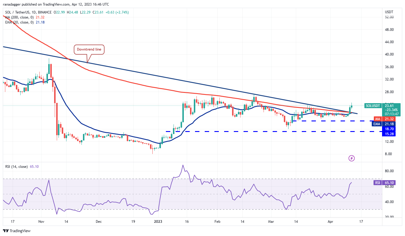 This positive view will invalidate if the price turns down and breaks below the downtrend line. Such a move will suggest that the breakout may have been a bull trap. The SOL/USDT pair may then tumble to $15.28.