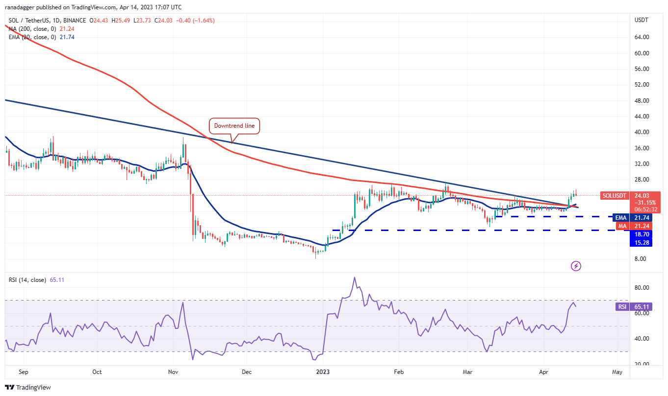 The bulls have built upon the breakout from the downtrend line in Solana (SOL). This shows demand at higher levels.