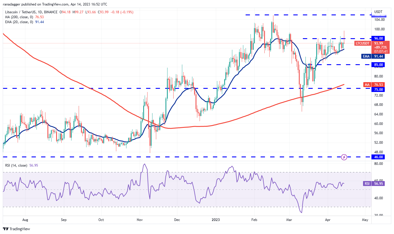Litecoin (LTC) turned up from the 20-day EMA ($91) on April 13, indicating that the bulls continue to view the dips as a buying opportunity.