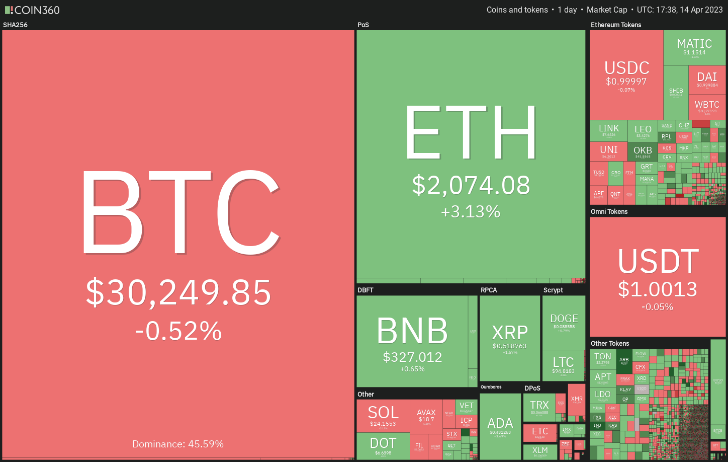 The bears tried to stall the up-move on April 12 but the bulls did not give up. They resumed their purchase on April 13 and cleared the hurdle at $30,550 on April 14.