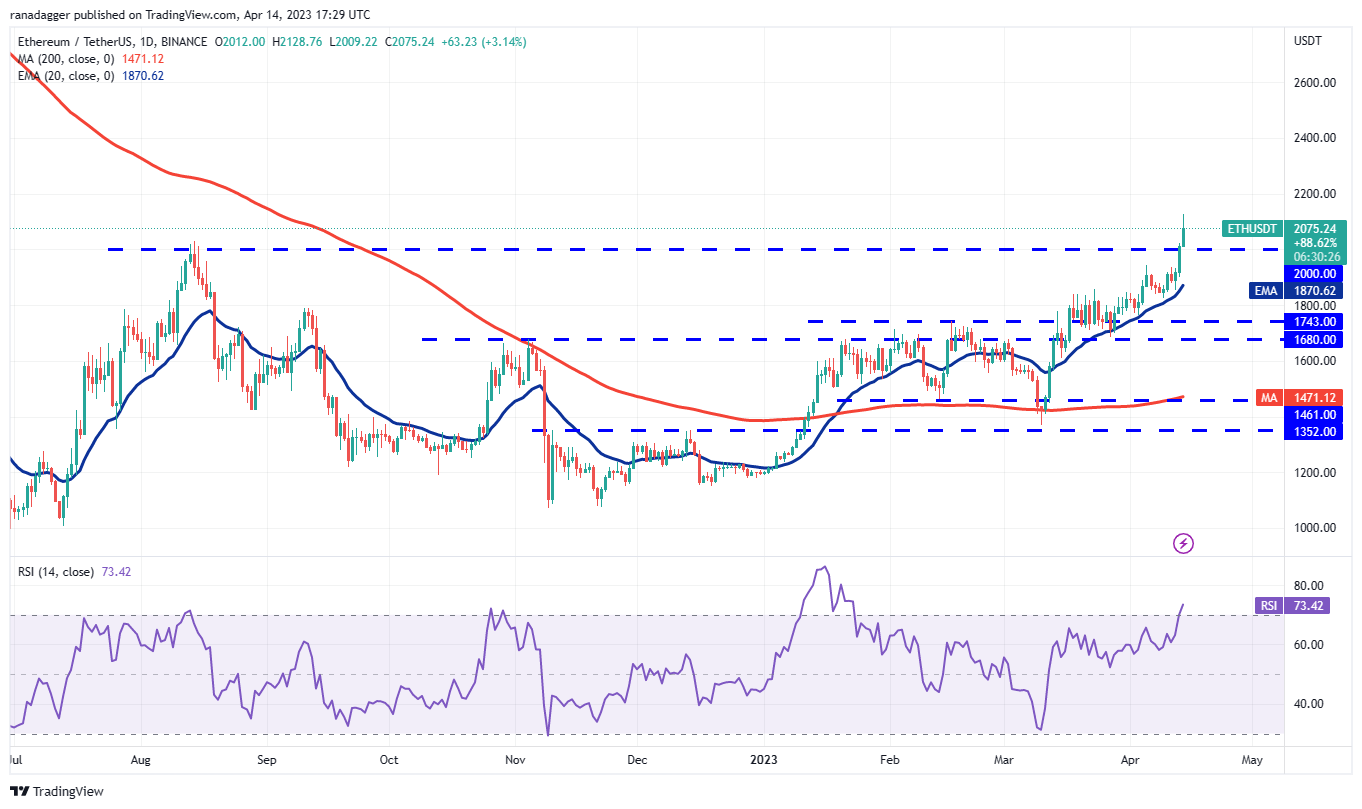 Ether (ETH) bounced off the 20-day EMA ($1,870) on April 12, indicating that the bulls are guarding the level with vigor.