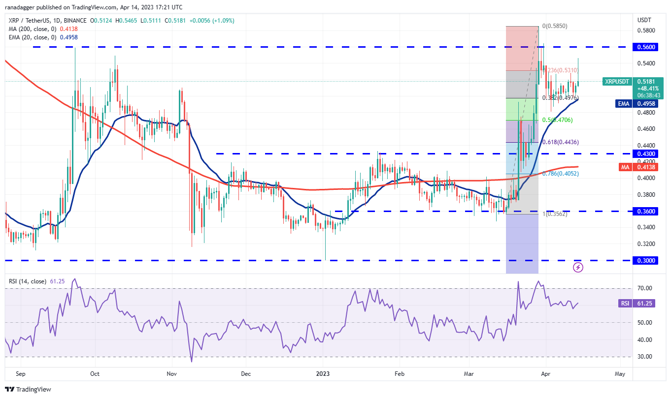 Buyers successfully protected the 38.2% Fibonacci retracement level of $0.49. That attracted further buying in XRP (XRP), which pushed the price toward the overhead resistance zone of $0.56 to $0.58.
