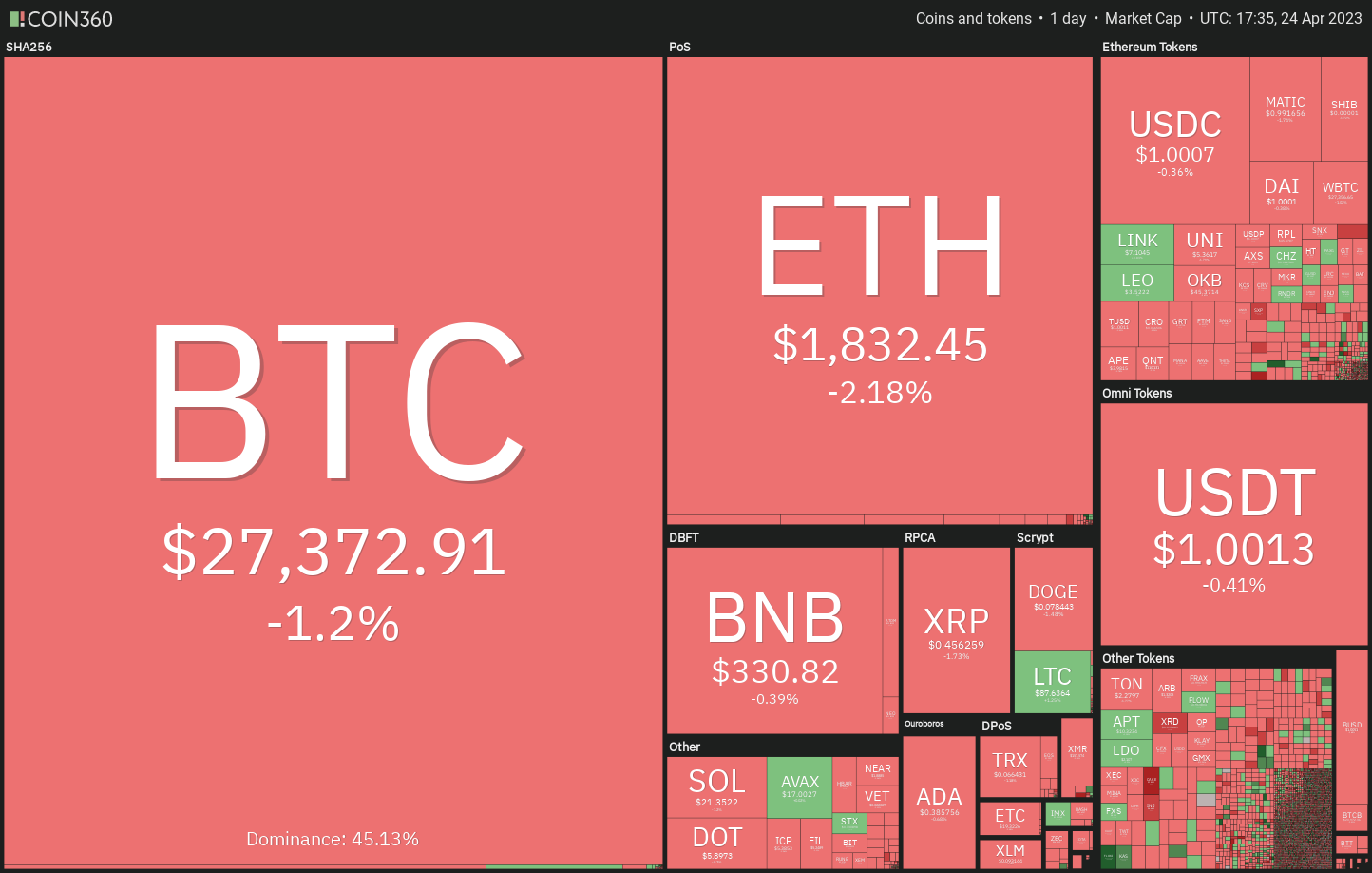 https://images.cointelegraph.com/cdn-cgi/image/format=auto,onerror=redirect,quality=90,width=840/https://s3.cointelegraph.com/uploads/2023-04/01cc6604-8a21-4051-97de-908042673d08.jpgBitcoin and select altcoins are at risk of falling below their respective support levels and starting a deeper correction.