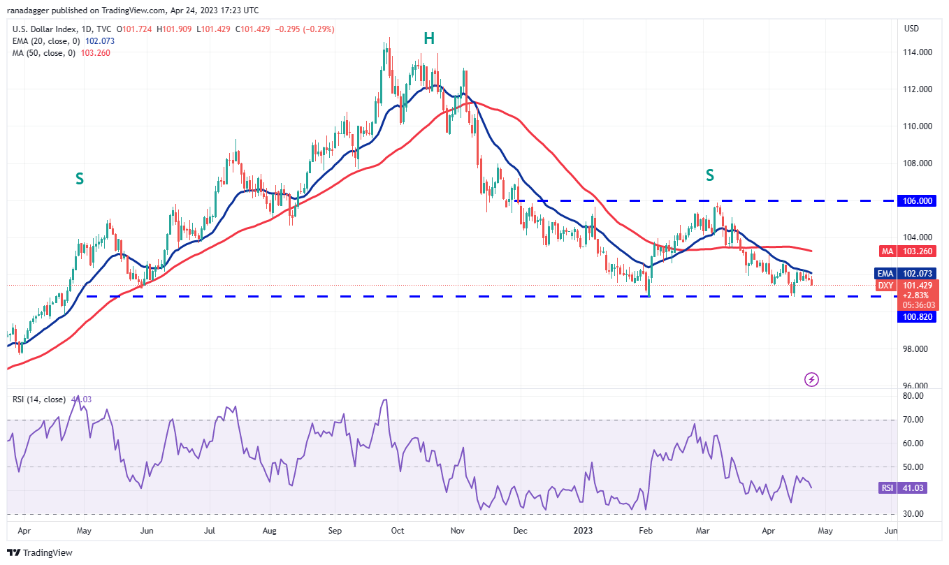 The failure of the bulls to push the U.S. dollar index (DXY) above the 20-day EMA (102) in the past few days seems to have emboldened the bears who are trying to gain control.