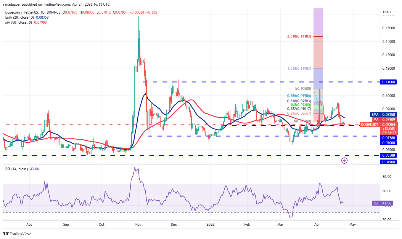 The bulls are trying to defend the support near $0.08 but the shallow bounce in Dogecoin (DOGE) shows that demand dries up at higher levels.