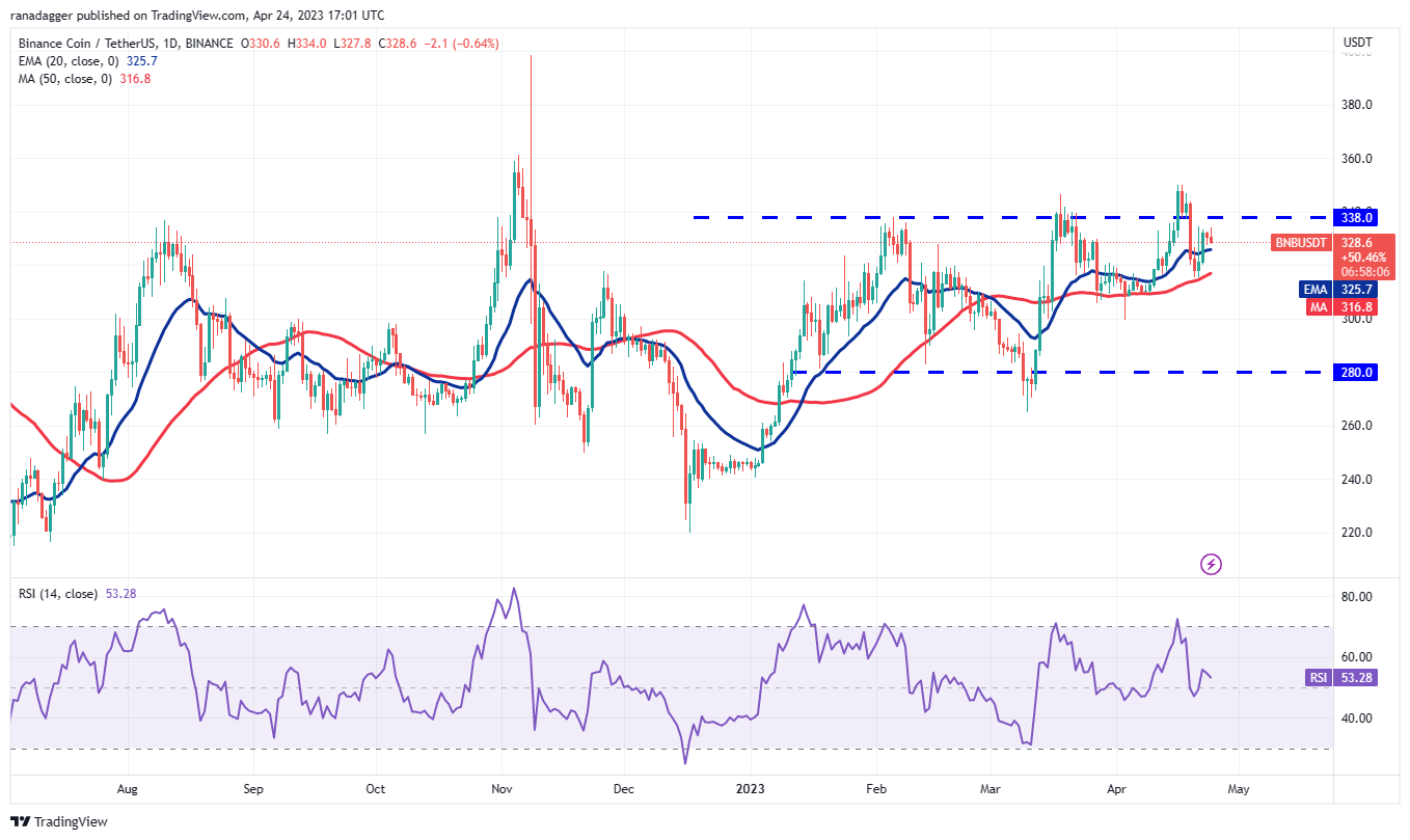 The bulls are trying to push BNB (BNB) above the overhead resistance at $338 but the bears are holding their ground.