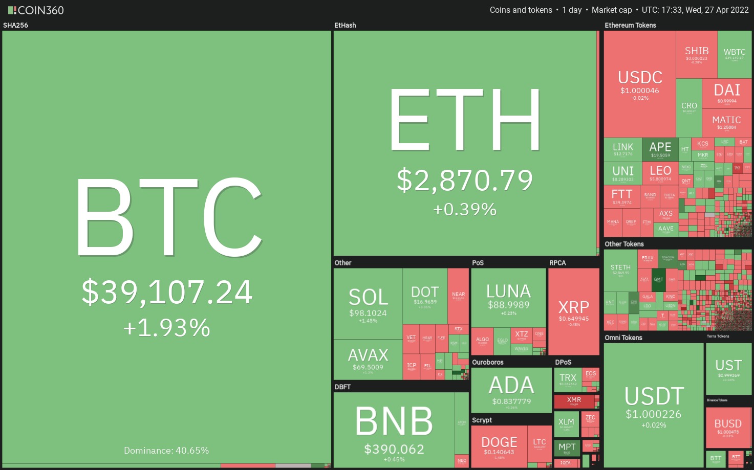 Tento príspevok bol pôvodne publikovaný na stránke https://cointelegraph.com/news/price-analysis-4-27-btc-eth-bnb-xrp-sol-luna-ada-avax-doge-dot a autorom článku je Cointelegraph By Rakesh Upadhyay. Tento článok je iba kópia originálneho článku.