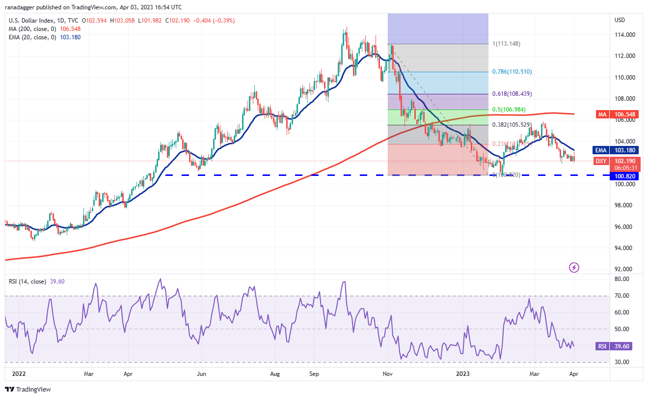 The U.S. dollar index broke below the 20-day EMA (103) on March 17, indicating that the recovery is fizzling out.