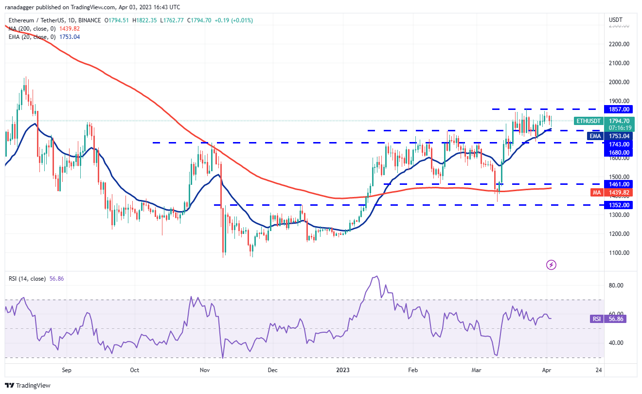 Ether (ETH) once again turned up from the 20-day EMA ($1,753) on April 3, indicating that the sentiment is positive and traders are buying on dips.