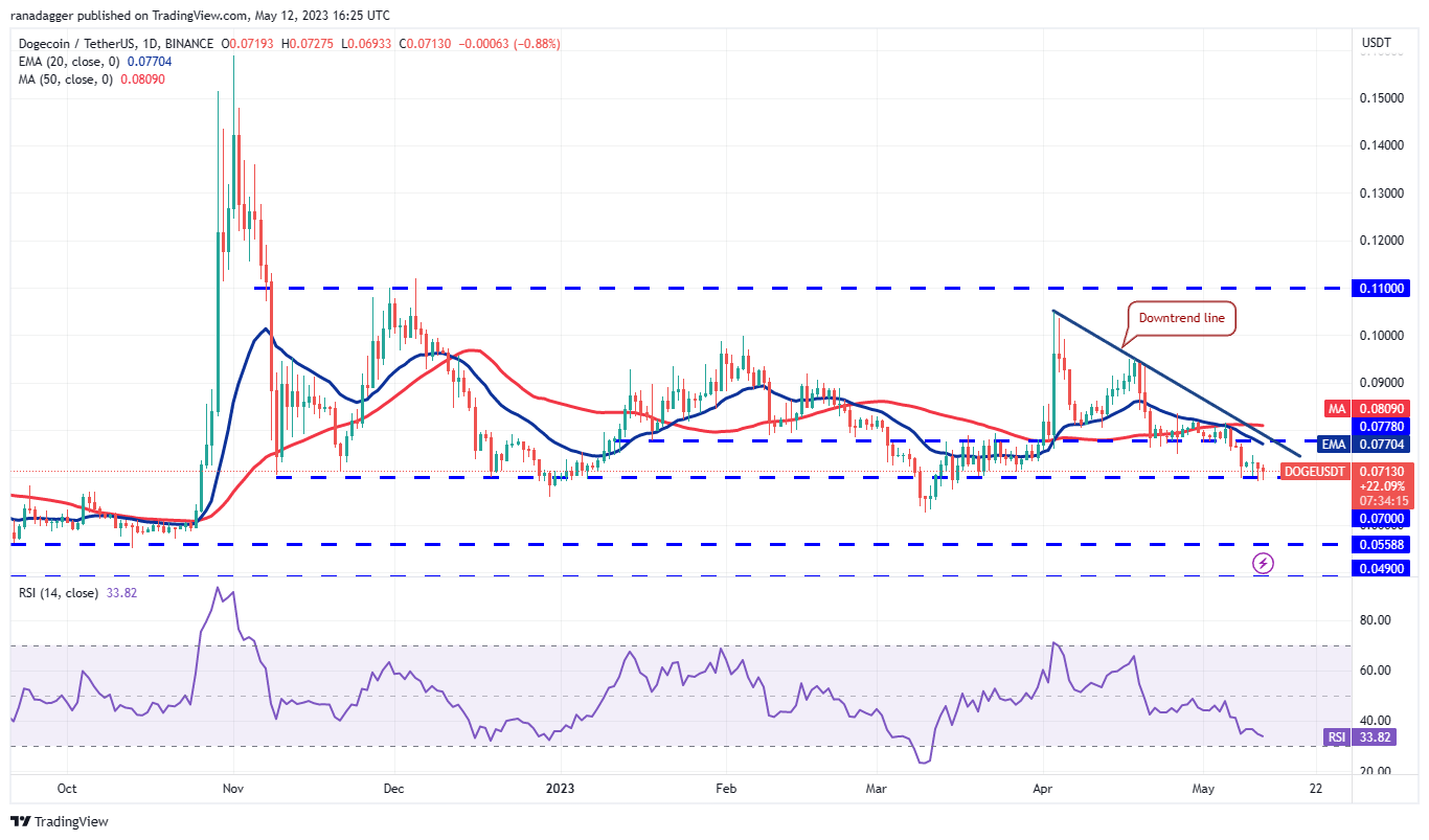 The bulls have managed to protect the $0.07 level for the past few days but they have not been able to start a relief rally in Dogecoin (DOGE). This suggests that buying fizzles out at higher levels.