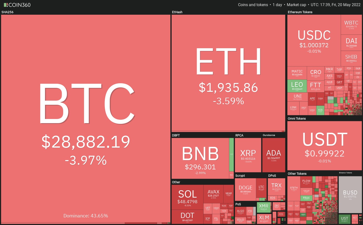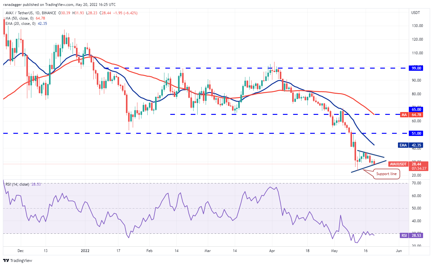 Bitcoin rebounded off the strong support at $28,630 on May 19 but the bulls could not push the price above the downtrend line. This suggests that bears have not yet given up and they continue to sell on rallies.