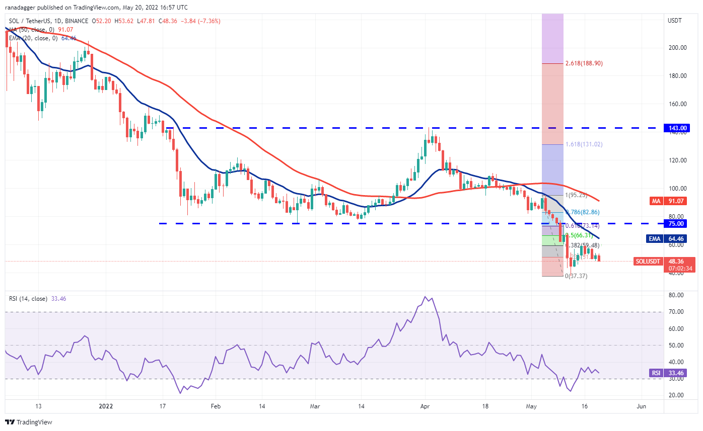 Solana (SOL) is in a strong downtrend. Attempts by the bulls to start a recovery on May 19 failed as bears continue to sell at higher levels. The bears pulled the price back below the psychological level at $50 on May 20.