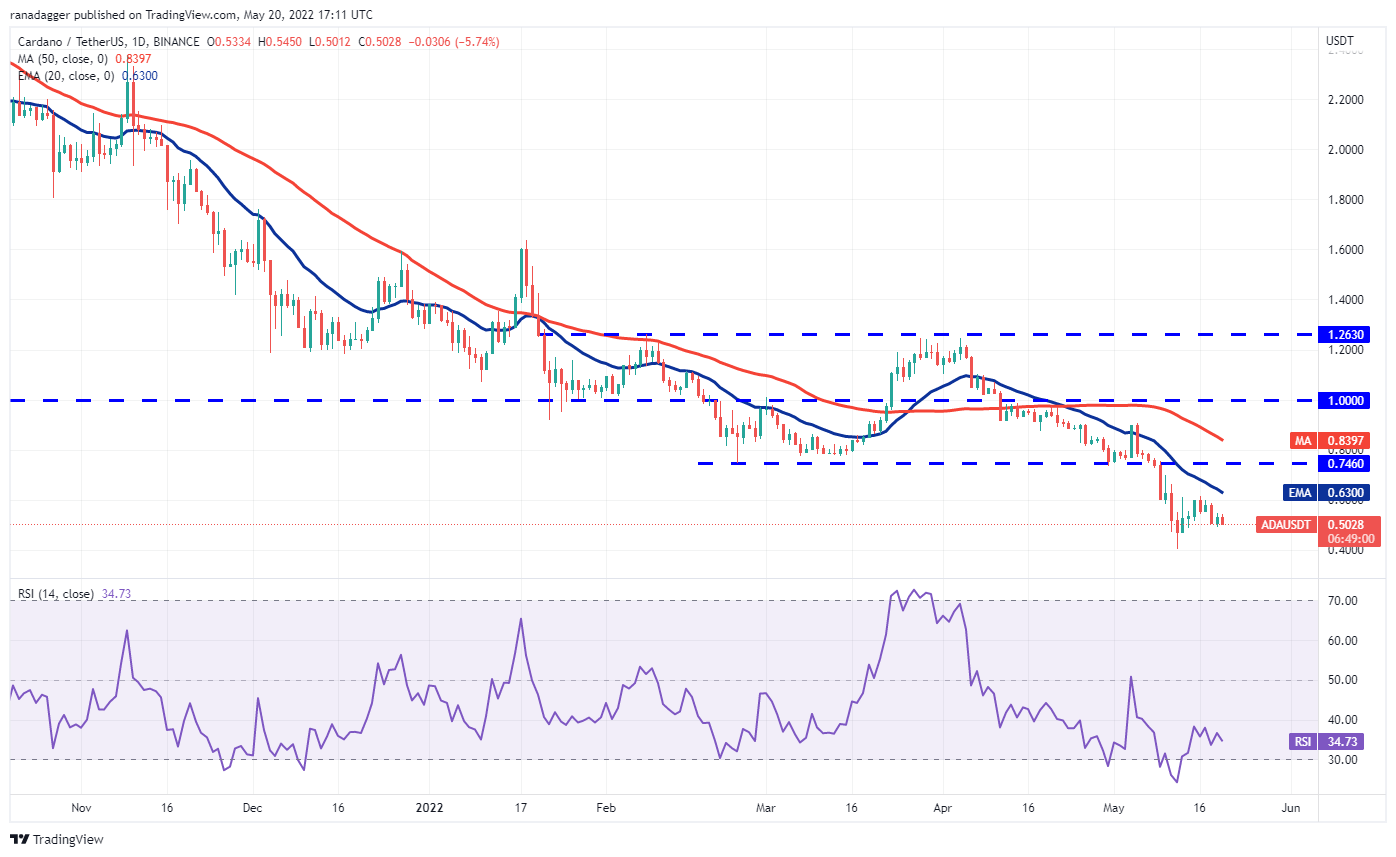 The bulls are attempting to defend the $0.50 support in Cardano (ADA) but the bears are in no mood to let go of their advantage and they continue to sell on every minor rally.