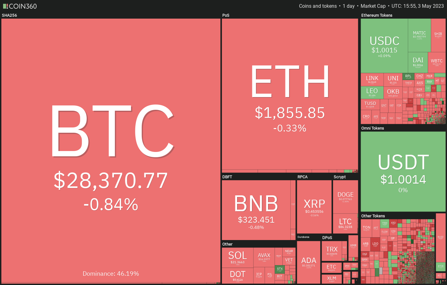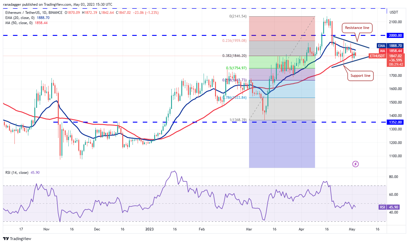 https://images.cointelegraph.com/cdn-cgi/image/format=auto,onerror=redirect,quality=90,width=840/https://s3.cointelegraph.com/uploads/2023-05/c87cd185-09ea-4273-ba75-04f01a0a2557.jpgBitcoin and select altcoins are showing a continuation pattern, indicating indecision among the bulls and the bears.