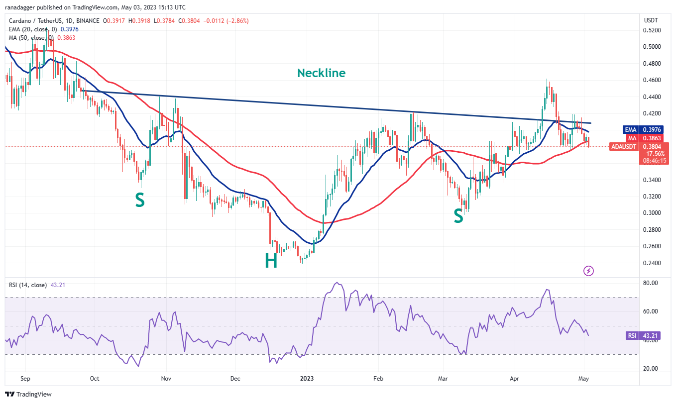 The bulls held Cardano (ADA) above the 50-day simple moving average ($0.38) on May 2 but they failed to overcome the obstacle at the 20-day EMA ($0.39).