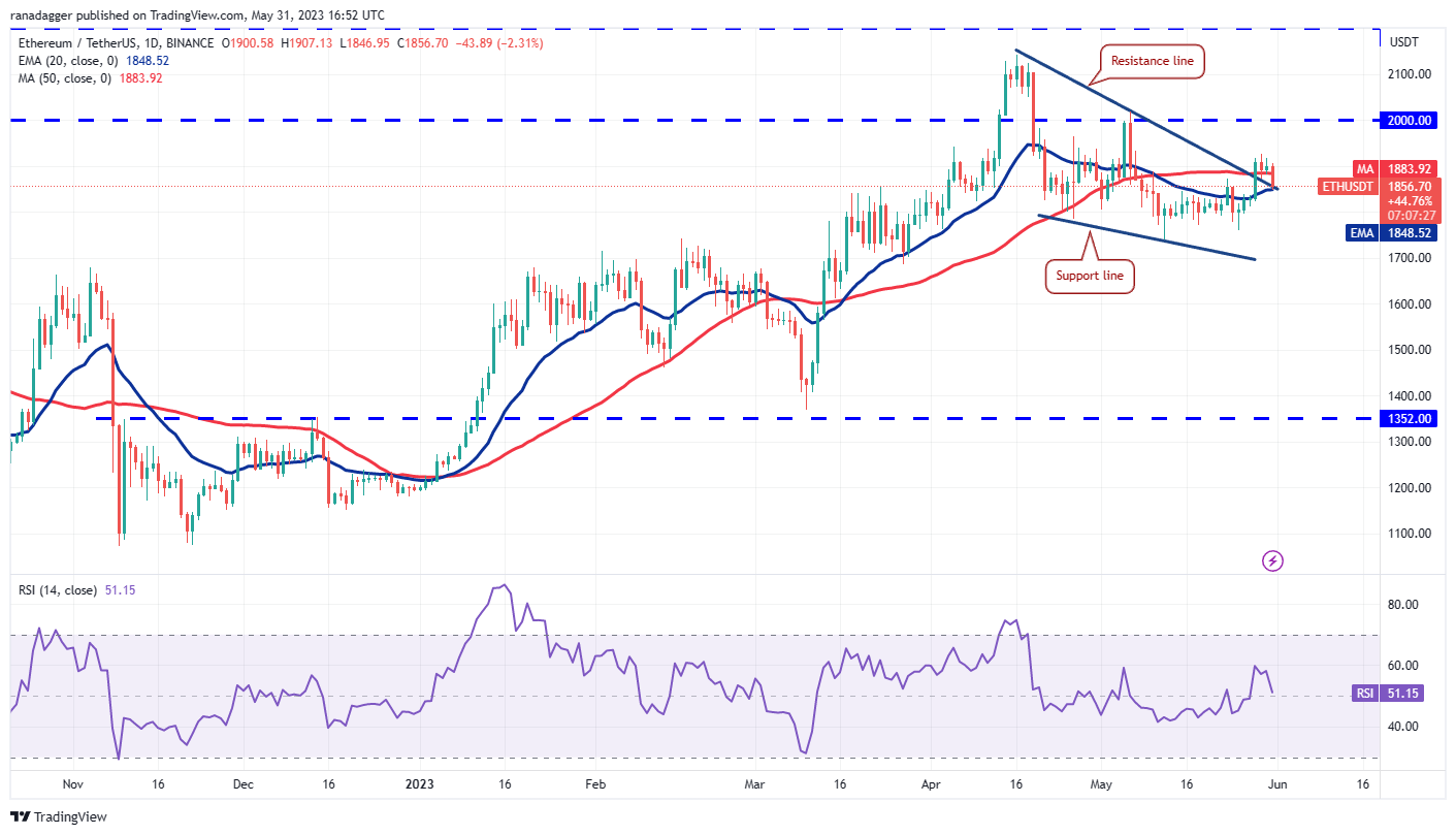 The bulls are struggling to maintain Ether (ETH) above the 50-day SMA ($1,883). This suggests a lack of demand at higher levels.
