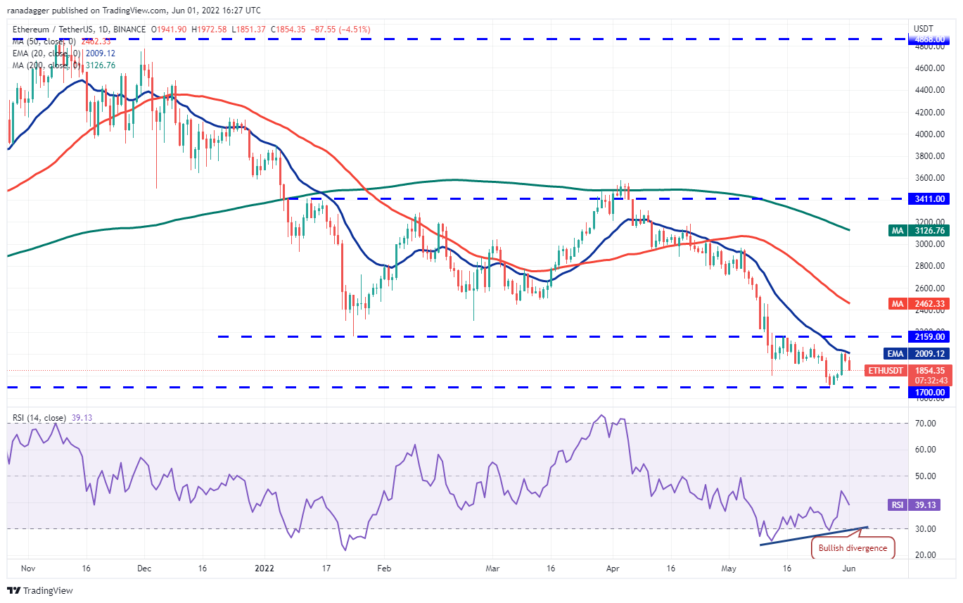 The bears stalled Ether’s (ETH) relief rally at the 20-day EMA ($2,009) on May 31, indicating that they are not allowing the bulls to get a foothold.