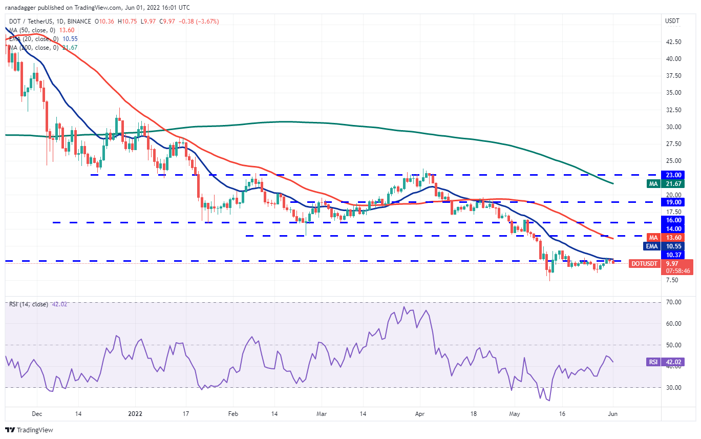 Polkadot (DOT) is facing resistance at the 20-day EMA ($10.55) but the bulls have not allowed the price to sustain below $10. This suggests strong demand at lower levels.
