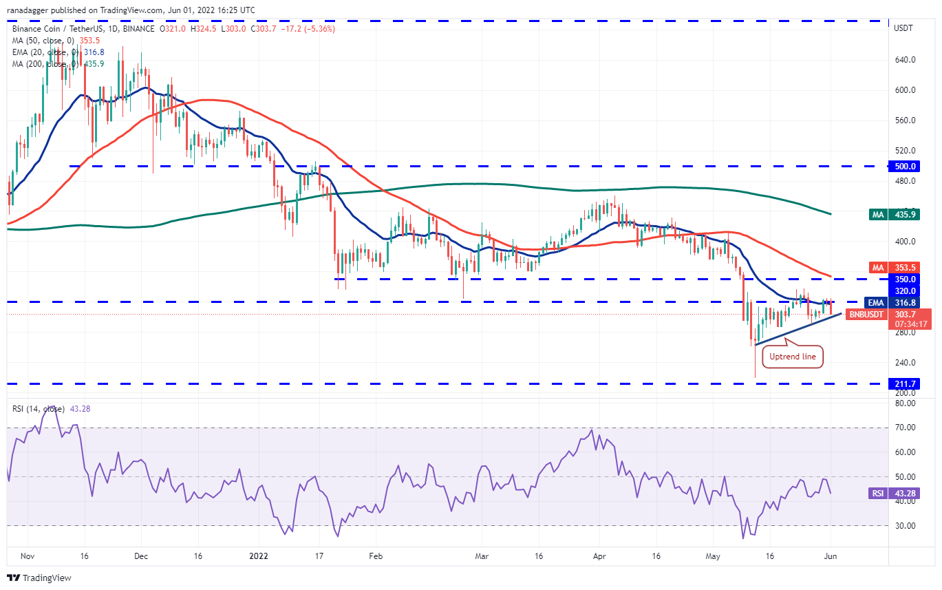 BNB rose above the immediate resistance of $320 on May 30 but the bulls have not been able to build upon this move. This indicates that bears are posing a strong challenge at $325.