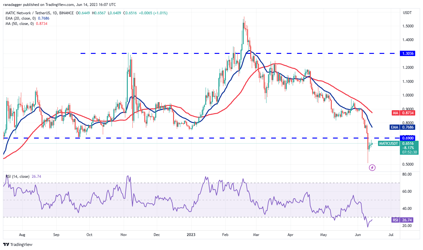Contrarily, if bulls thrust the price above $0.69, the MATIC/USDT pair may reach the 20-day EMA ($0.76). A break above this level will indicate that the bears are losing their grip. The pair may then attempt a rally to $1.
