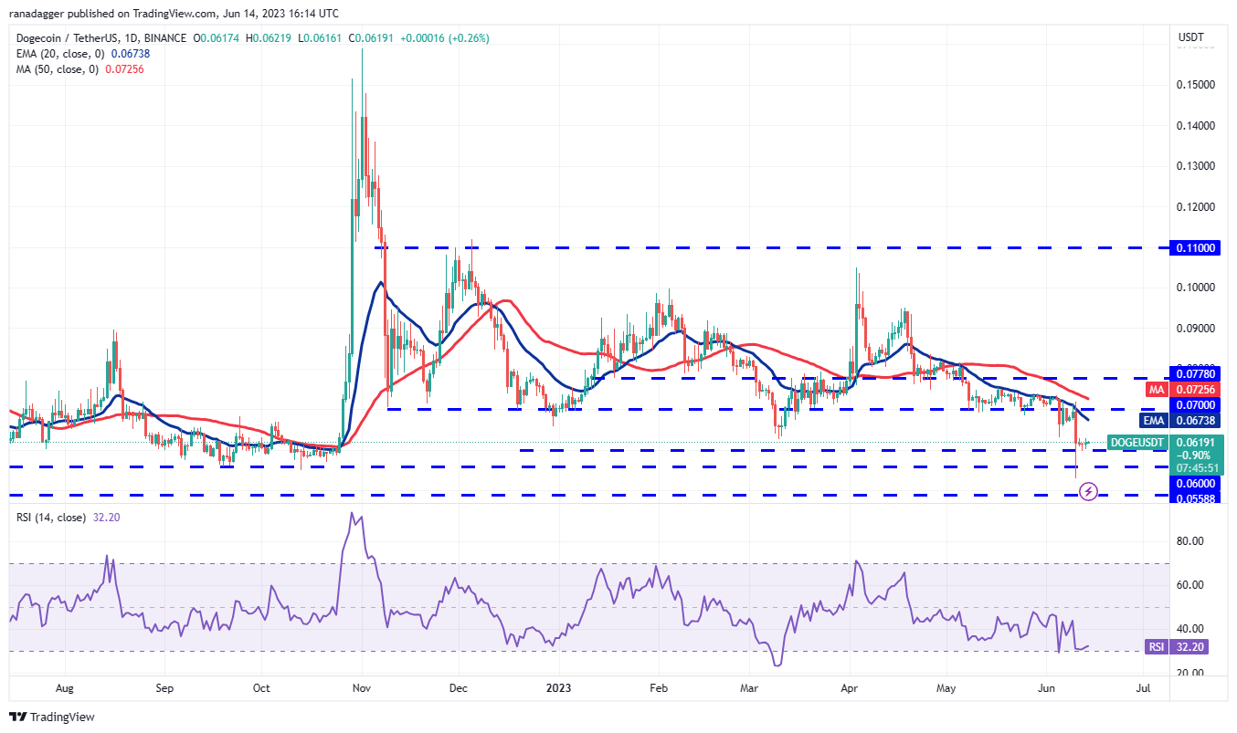 Dogecoin (DOGE) has been sustaining above the $0.06 level since June 11, but a minor negative is that the bulls have failed to start a meaningful bounce.