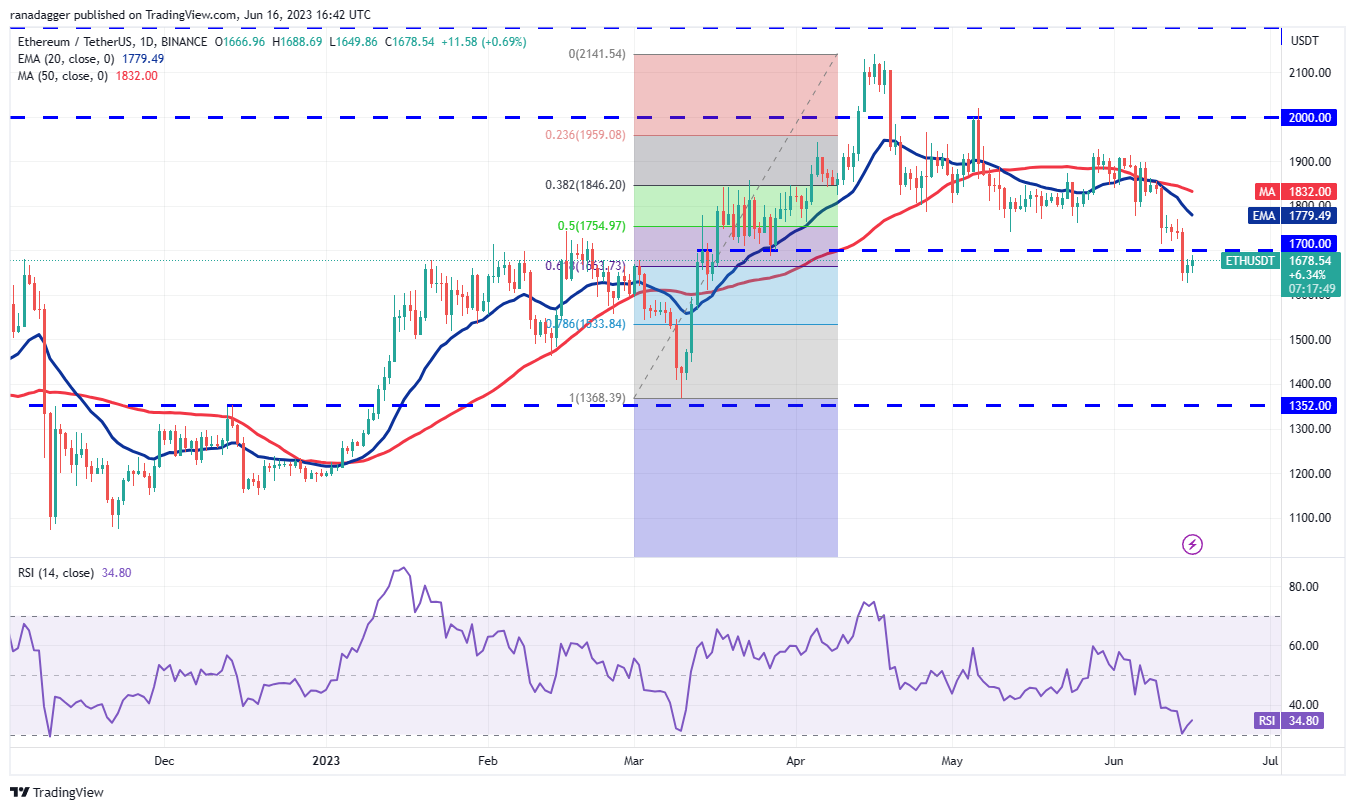 Alternatively, if the pair rises above $1,700, it will suggest strong demand at lower levels. The pair may then rise to the 20-day EMA ($1,779) where the bears will try to halt the recovery. If they fail in their endeavor, the prospects of a rally to $1,928 and thereafter to $2,000 increase.