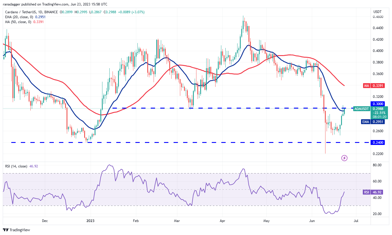 Cardano’s (ADA) long wick on the June 22 candlestick suggests that the bears are selling the rallies to this level.