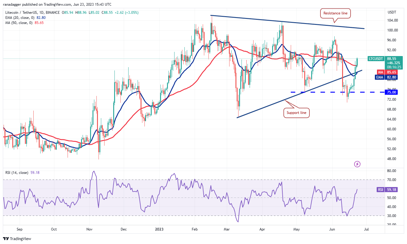 The bears tried to make a comeback on June 21 and 22 by defending the 50-day SMA ($85) but the bulls kept up the buying pressure in Litecoin (LTC).