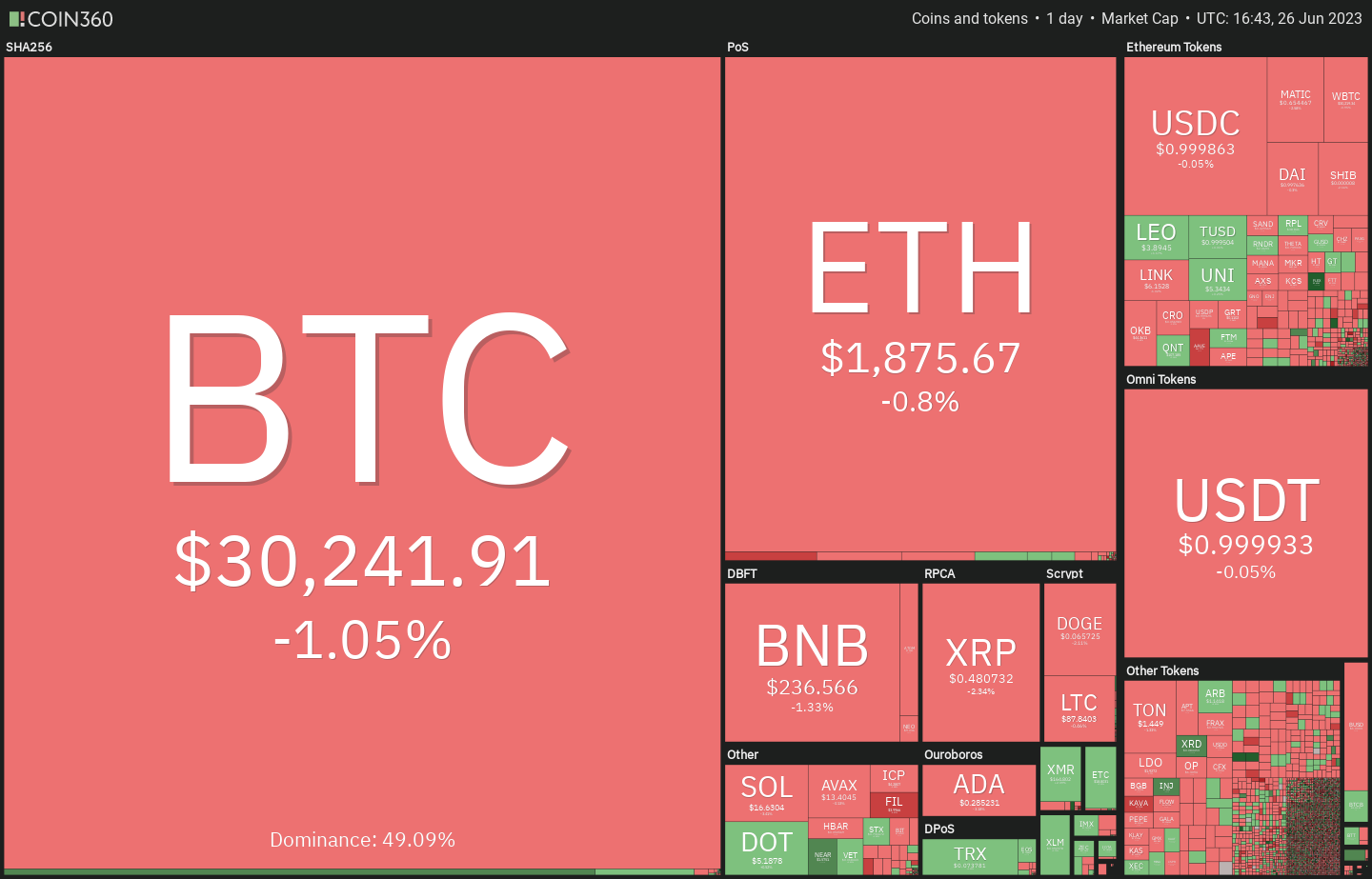 Tento príspevok bol pôvodne publikovaný na stránke https://cointelegraph.com/news/price-analysis-6-26-spx-dxy-btc-eth-bnb-xrp-ada-doge-sol-ltc a autorom článku je Cointelegraph By Rakesh Upadhyay. Tento článok je iba kópia originálneho článku.