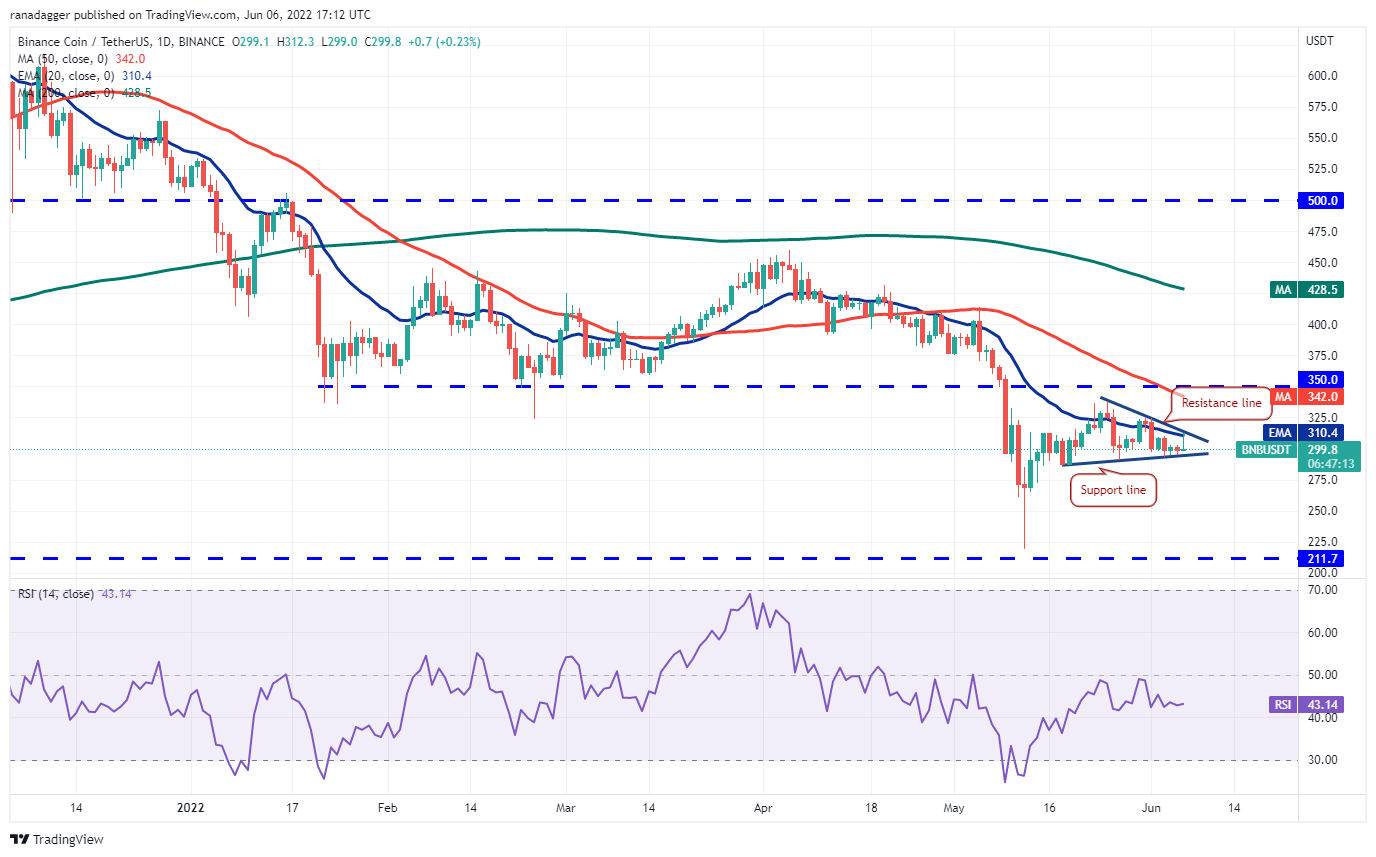 If the price turns down from the overhead resistance, the bears will again try to pull the BNB/USDT pair below the support line. If they manage to do that, the pair could decline to $265 where buying may emerge.