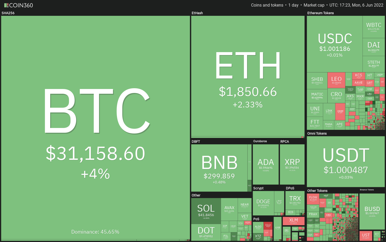 https://images.cointelegraph.com/images/840_aHR0cHM6Ly9zMy5jb2ludGVsZWdyYXBoLmNvbS91cGxvYWRzLzIwMjItMDYvNzFhZWQzOGMtNzAxYS00YjU2LTgwOWQtY2MzNzUwMTJjNTQ1LmpwZw==.jpgAfter nine successive weeks of red weekly candles, Bitcoin (BTC) printed a green weekly candle on June 5. Leading into this week, buyers kept up their momentum with a strong weekly open that boosted BTC price to $31,800.