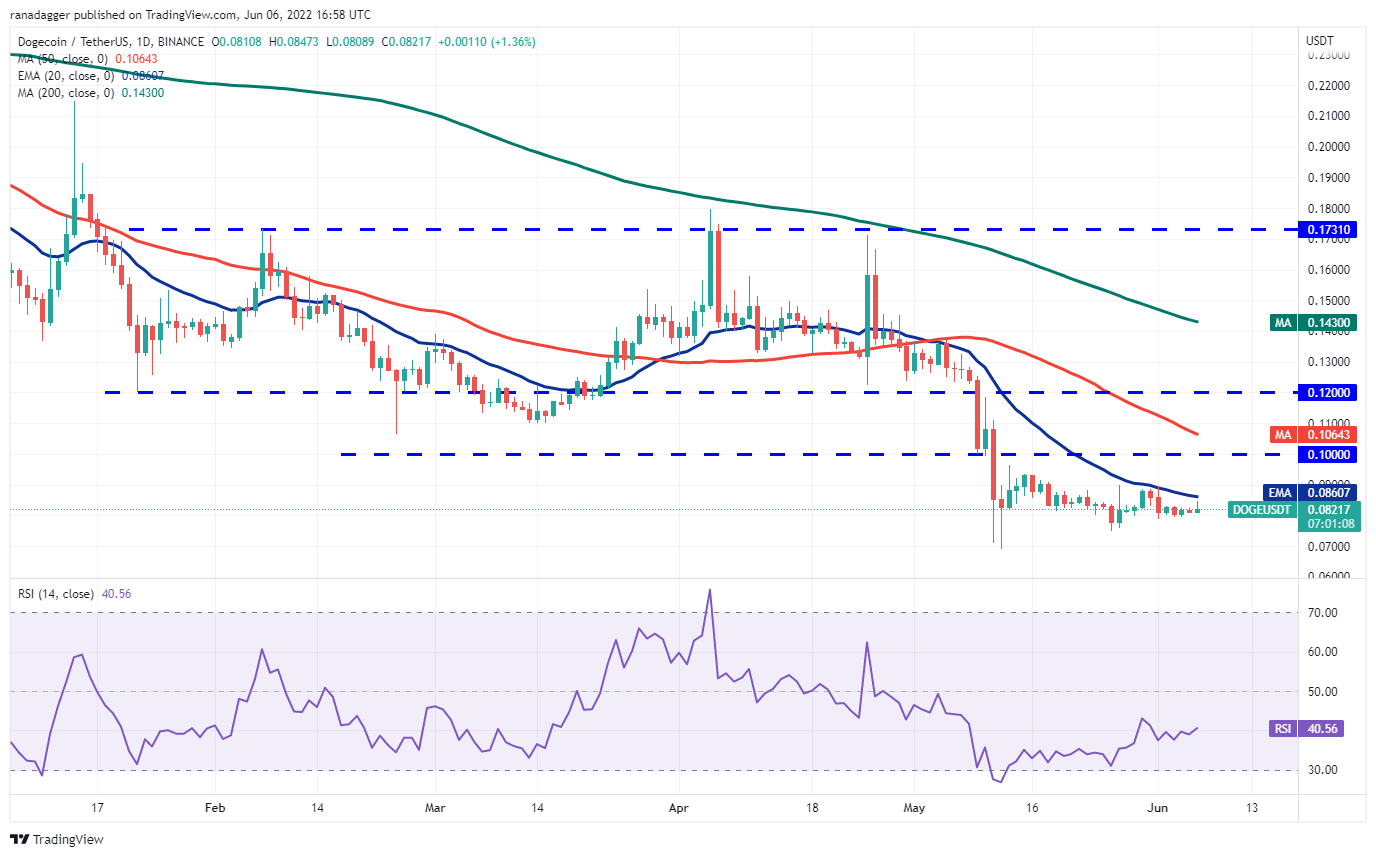 Dogecoin (DOGE) is stuck between the 20-day EMA ($0.08) and $0.08 for the past few days but this tight range trading is unlikely to continue for long.