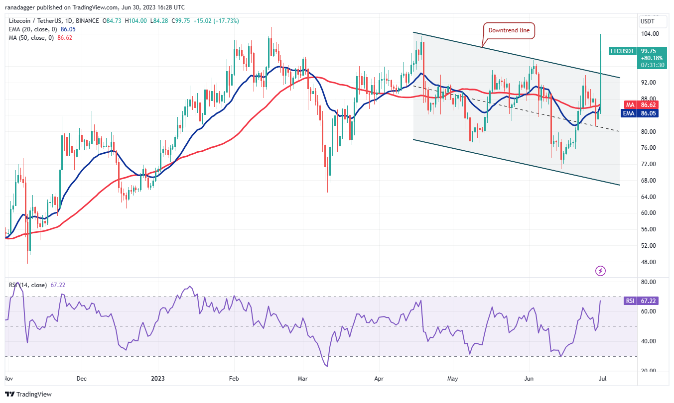 Litecoin (LTC) plummeted below the moving averages on June 28 but the bears could not build upon this advantage.