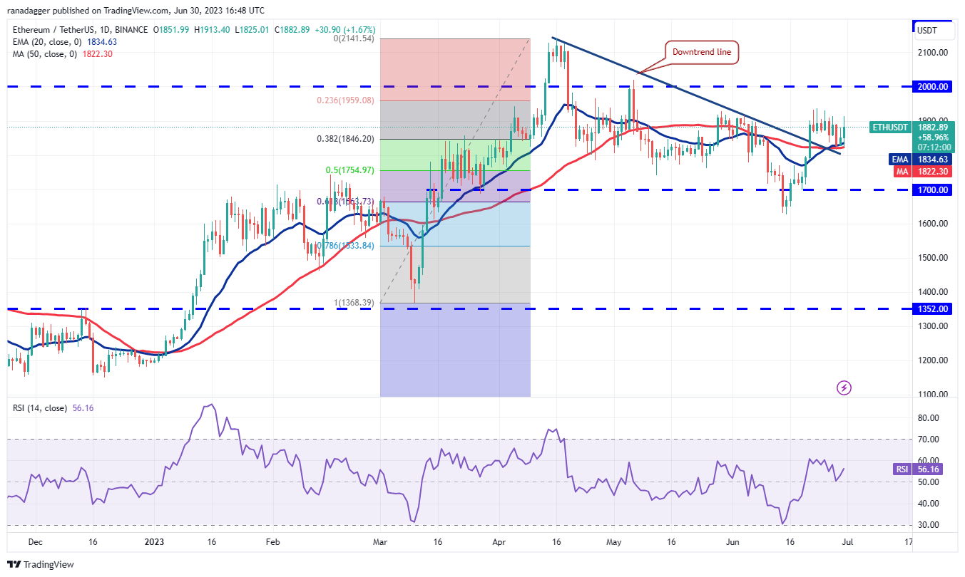 Ether (ETH) bounced off the moving averages on June 29, indicating that the lower levels are attracting buyers.