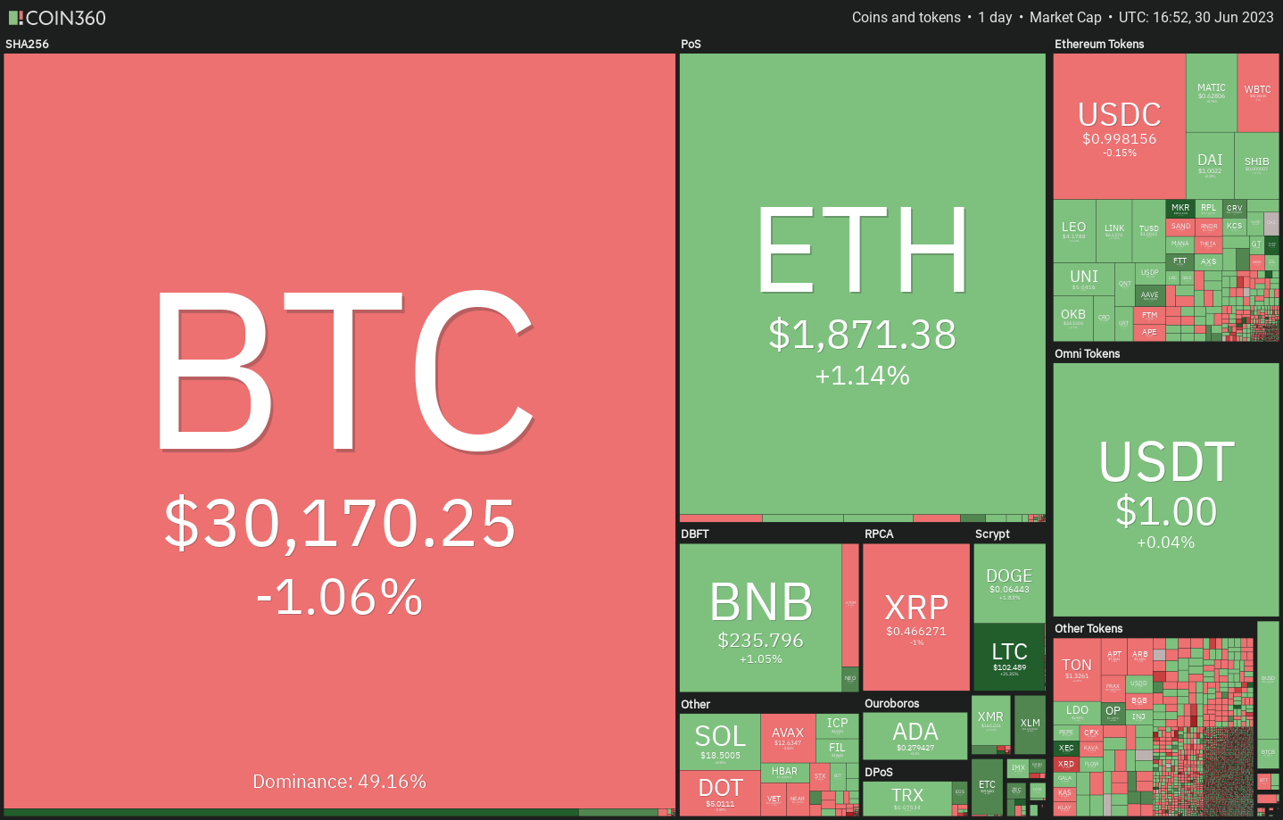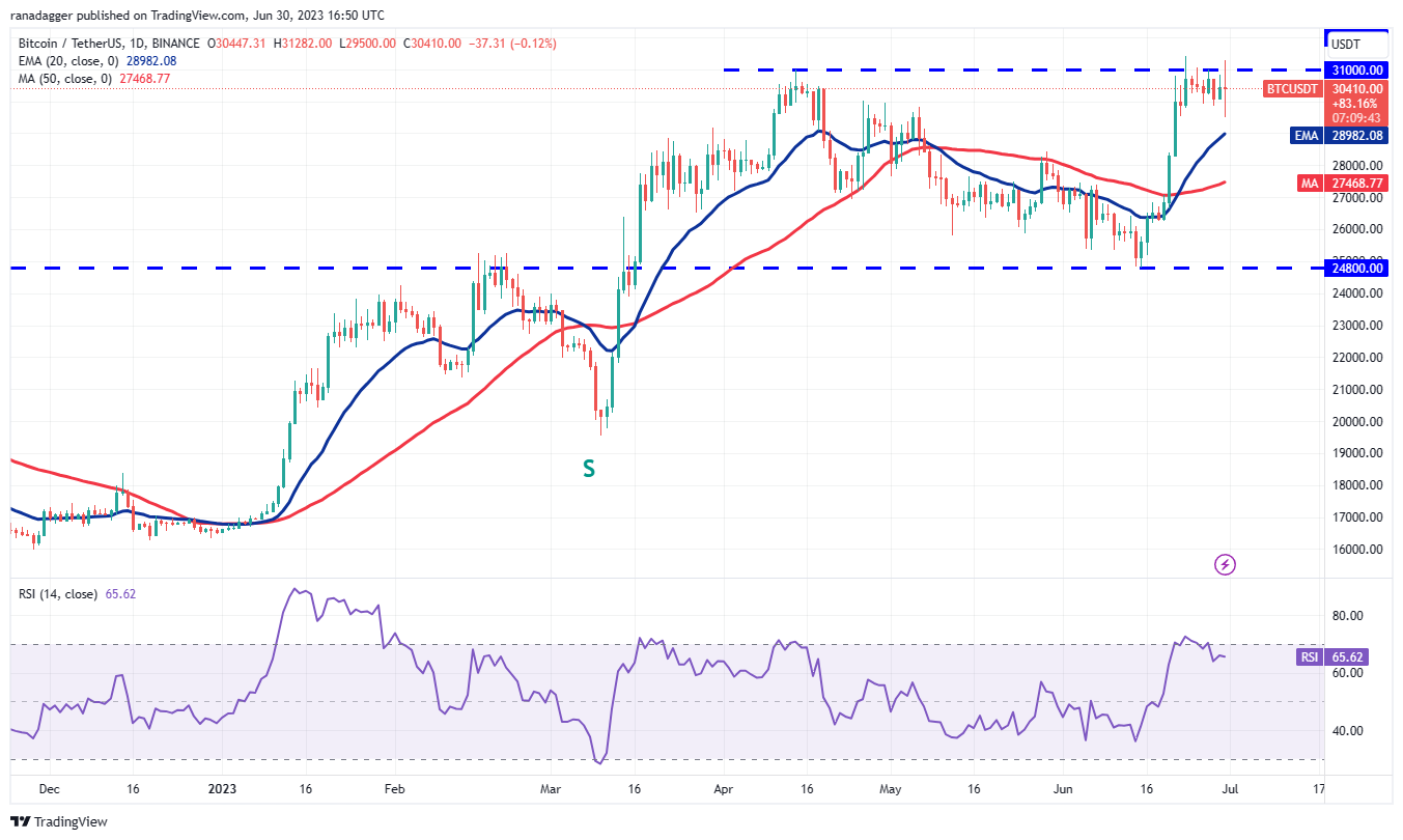 Bitcoin (BTC) witnessed a volatile trading session on the last day of the quarter. The bulls were trying to maintain Bitcoin’s price above $31,000 but they received a jolt on a Wall Street Journal report which stated that the United States Securities and Exchange Commission (SEC) had returned applications for the Bitcoin spot-price exchange-traded fund (ETF).