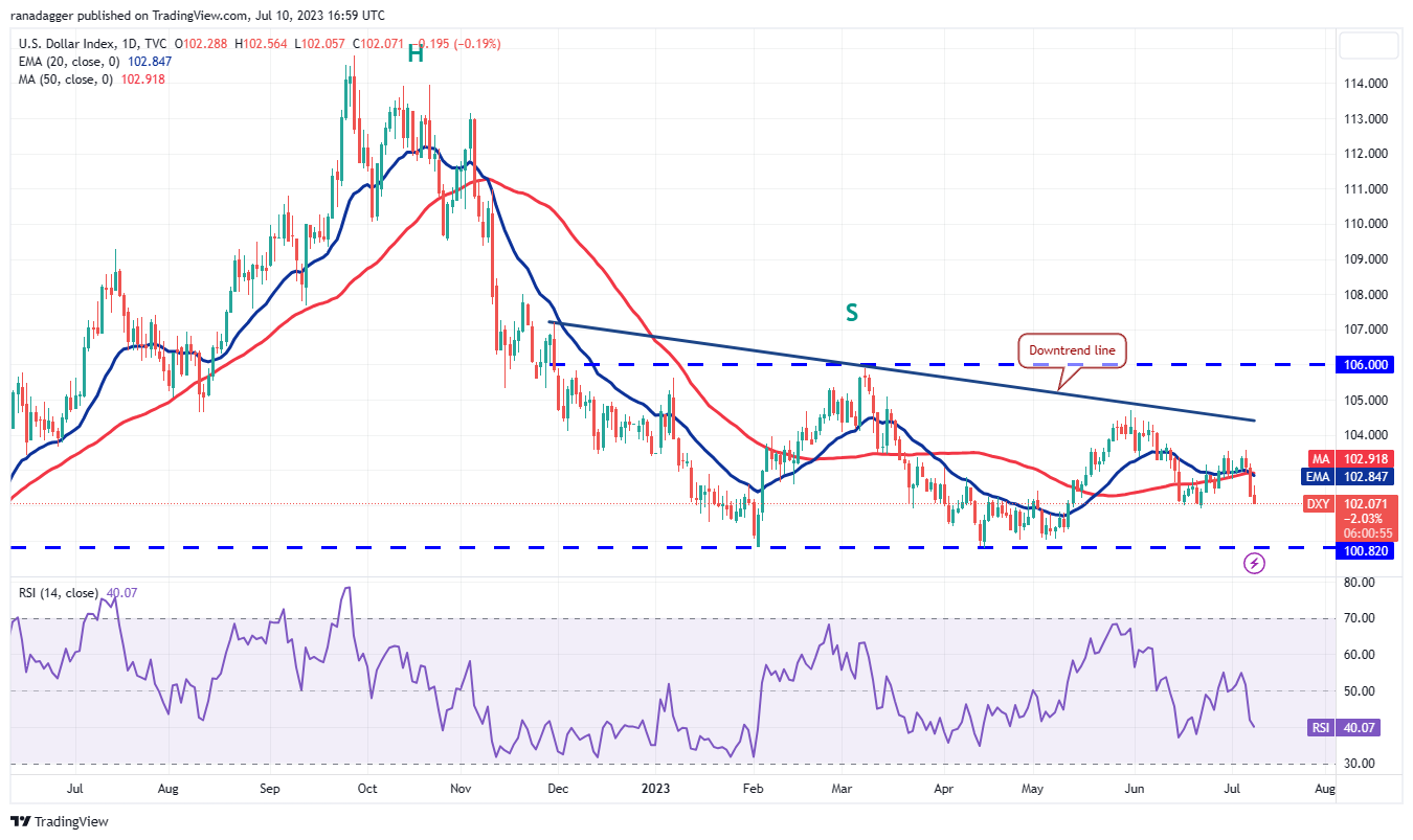 https://images.cointelegraph.com/cdn-cgi/image/format=auto,onerror=redirect,quality=90,width=840/https://s3.cointelegraph.com/uploads/2023-07/15573065-76e7-414d-b7a9-8a2e5302796a.jpgThe weakness in the U.S. Dollar Index bodes well for Bitcoin and altcoins in the near term.